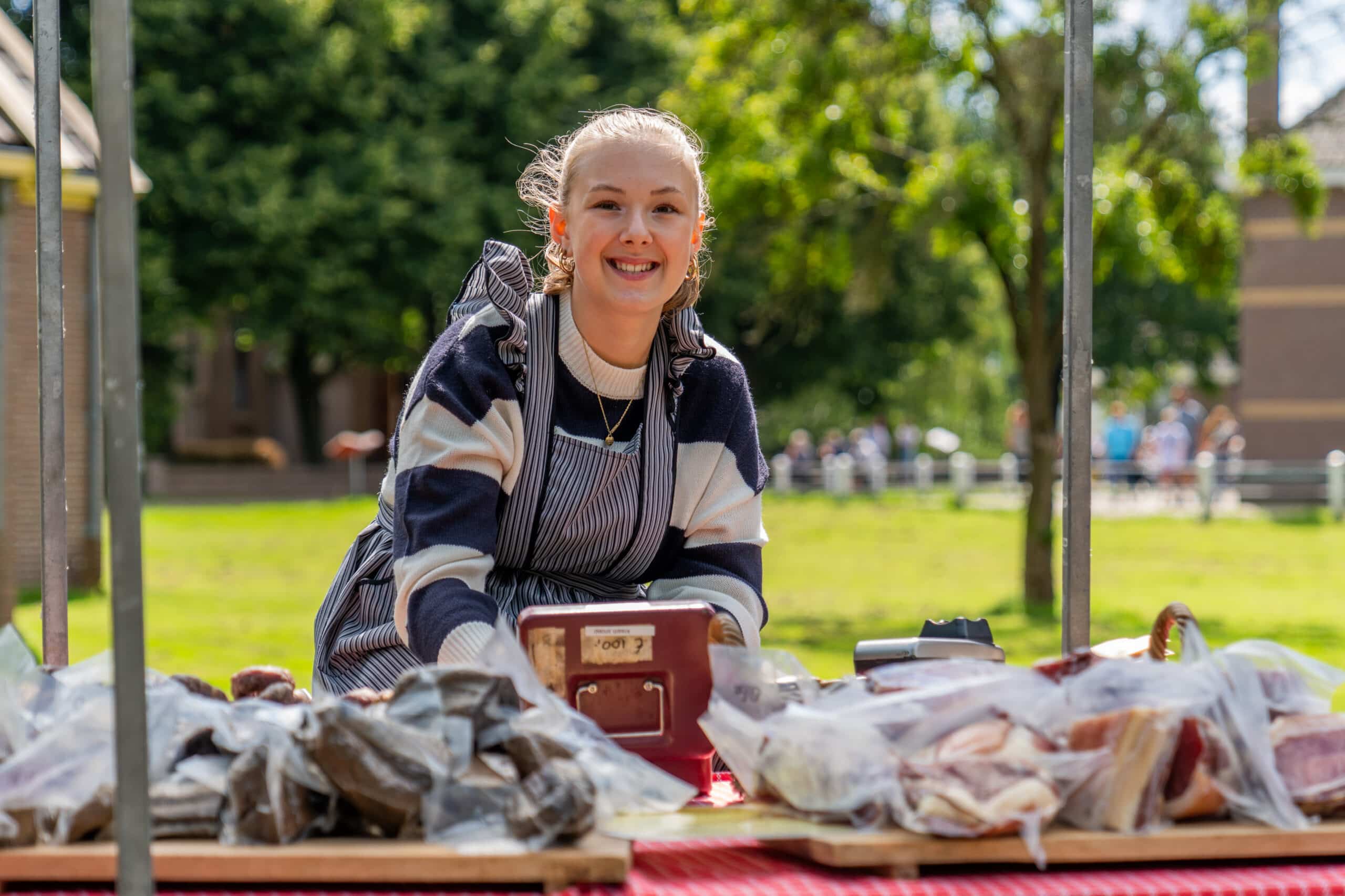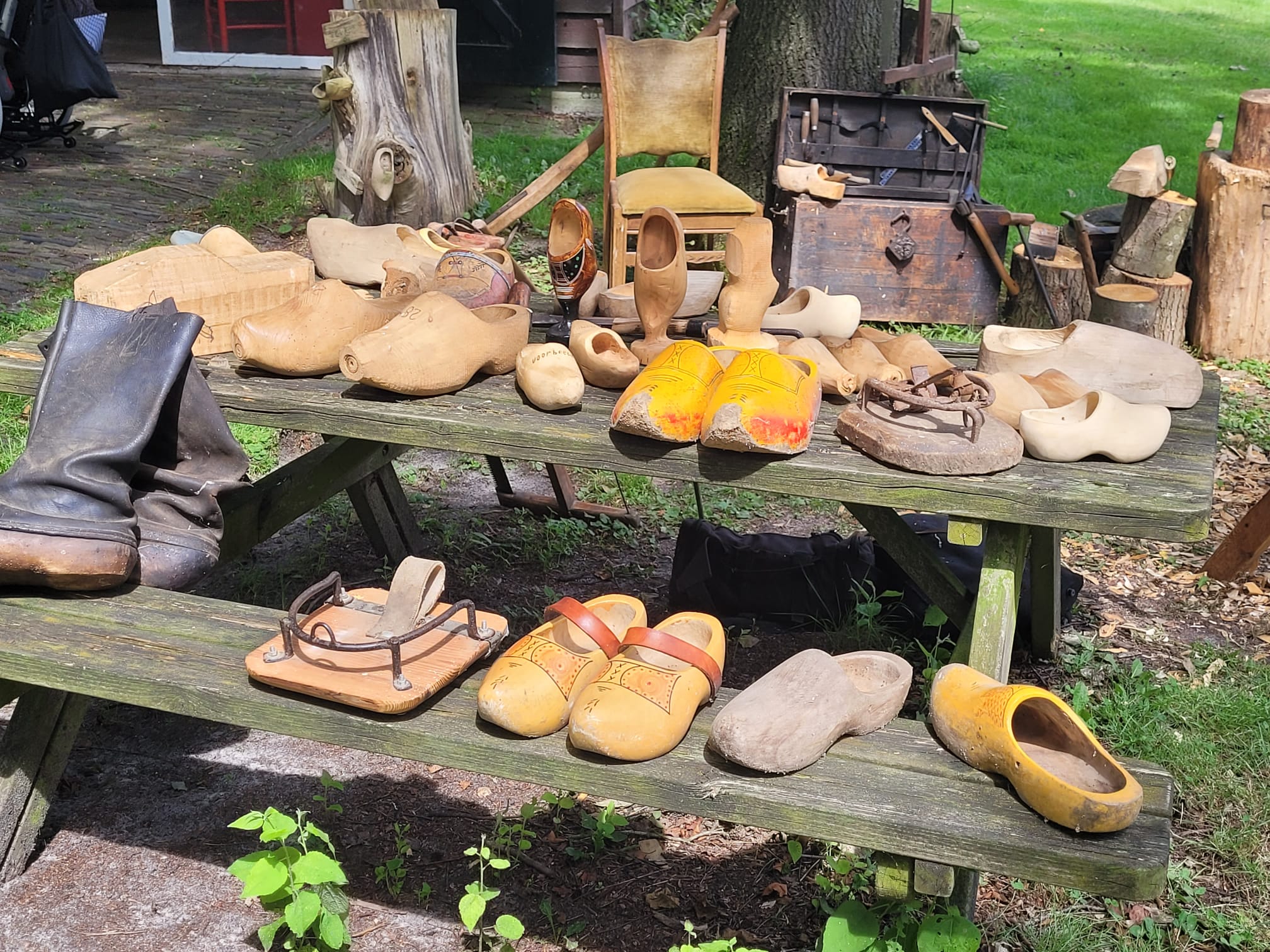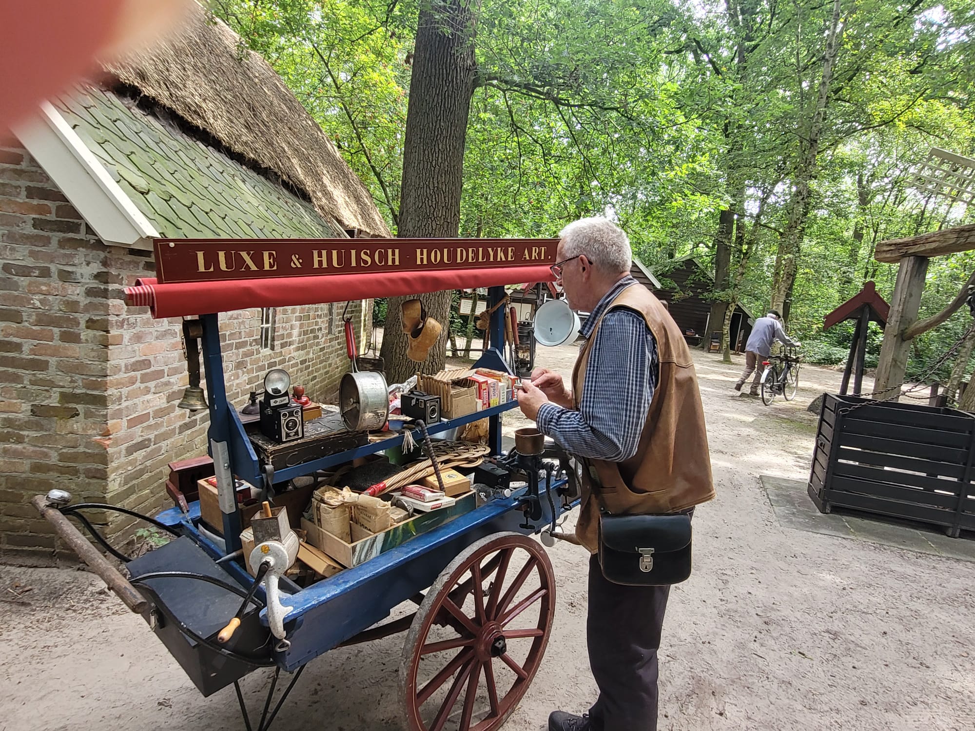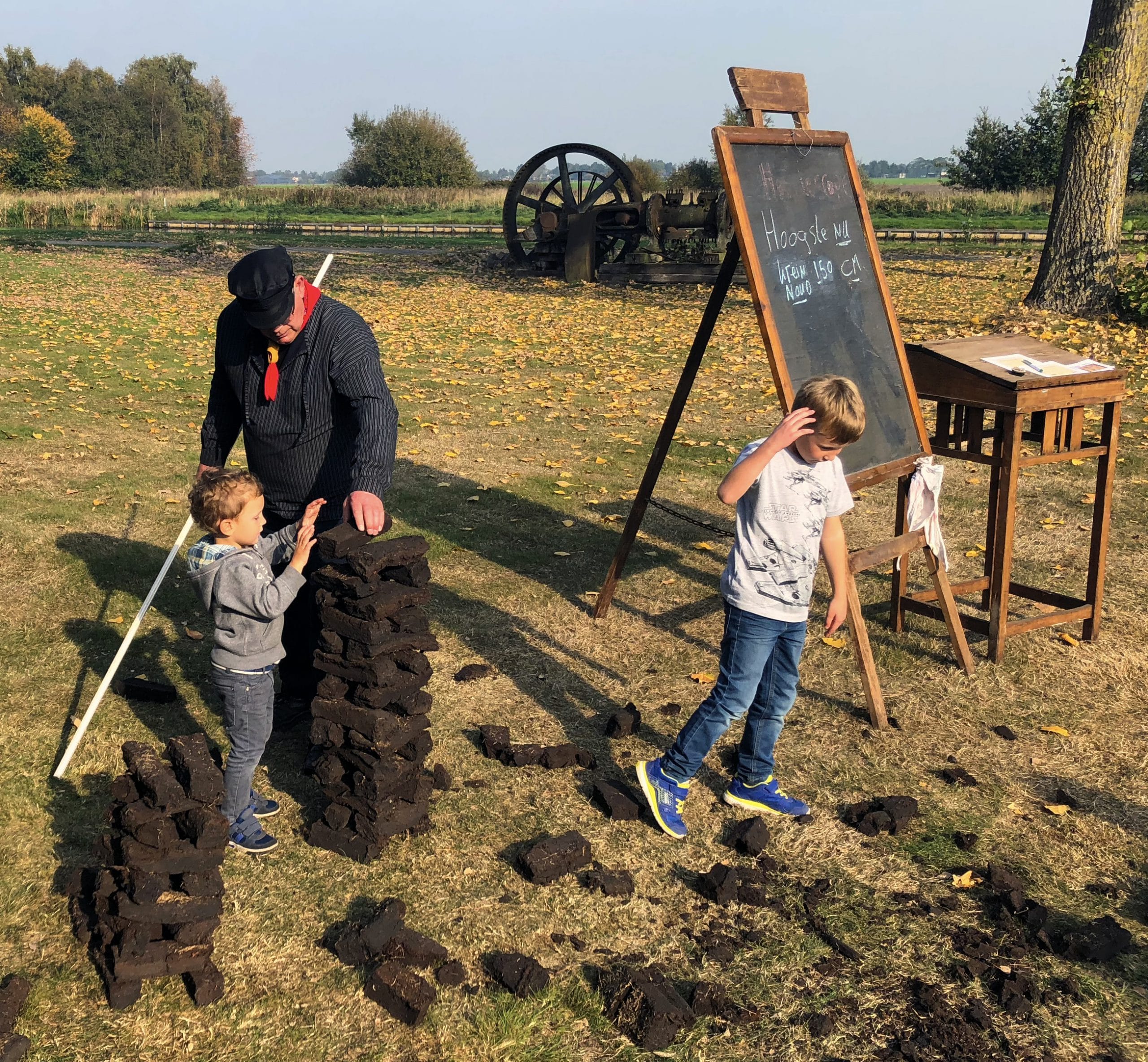 Je kunt turfstapelen, veel machines zijn in werking waaronder bij de houtzagerij. En natuurlijk de turfmachine op het hoogveengebied. De schooljuf wacht op de kinderen en de groenteman rijd met zijn kar door het dorp.